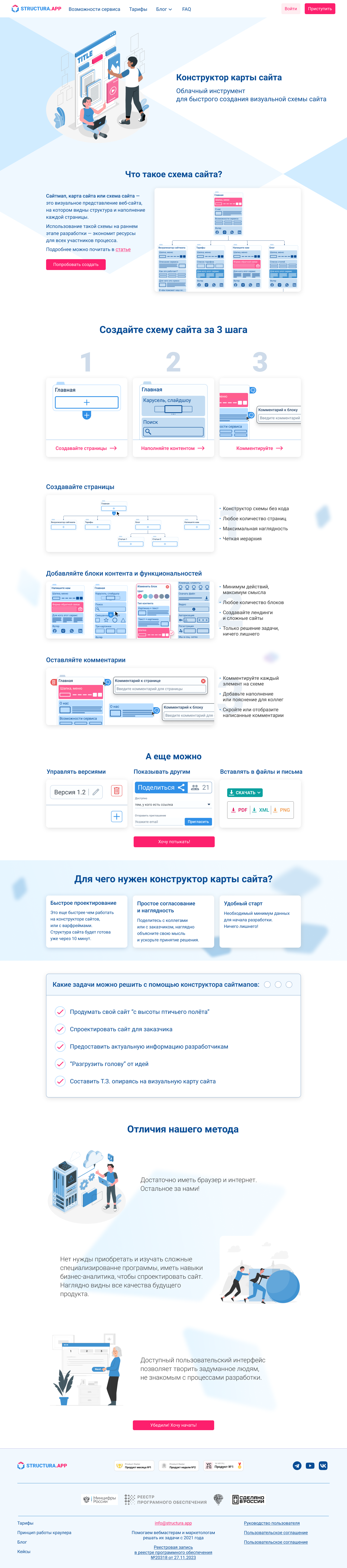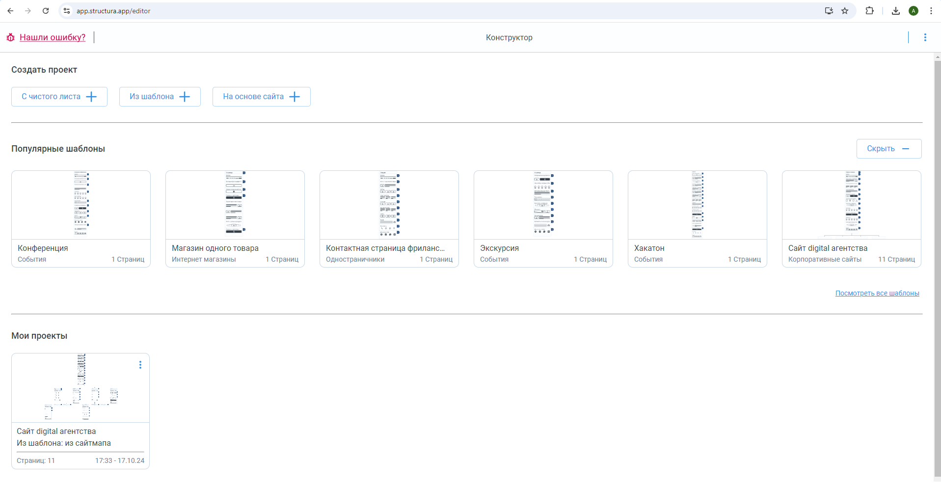 Structura.app — первый и единственный российский сервис, позволяющий всего за несколько минут собрать прототип будущего сайта.